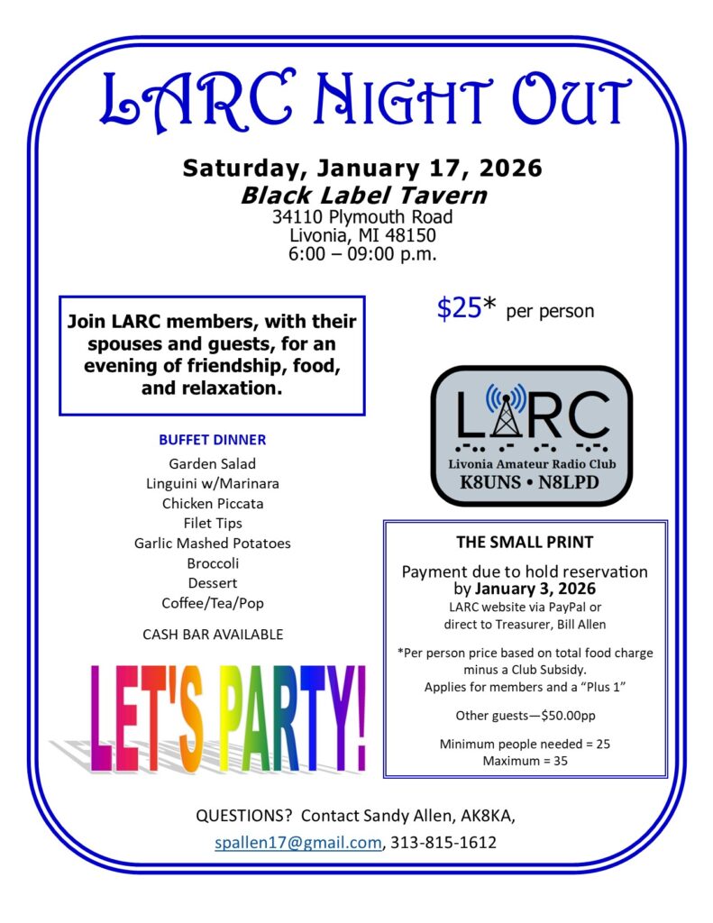 A reminder that LARC Night Out is Saturday January 17.